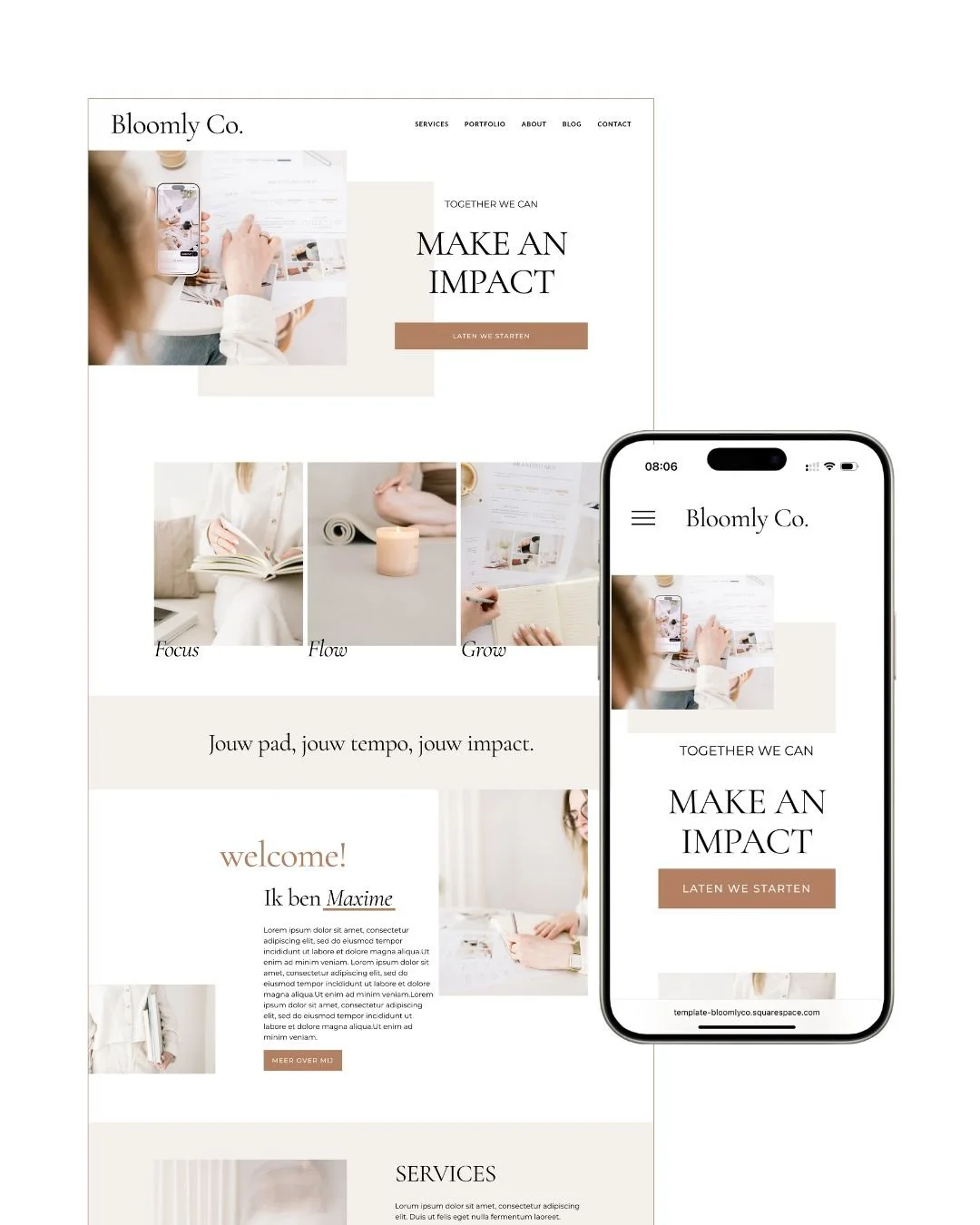 Jawel, met deze template bouw je jouw website in Squarespace. Ikzelf vind dit een superfijn, intuïtief platform.